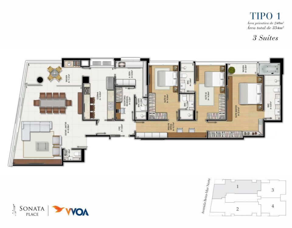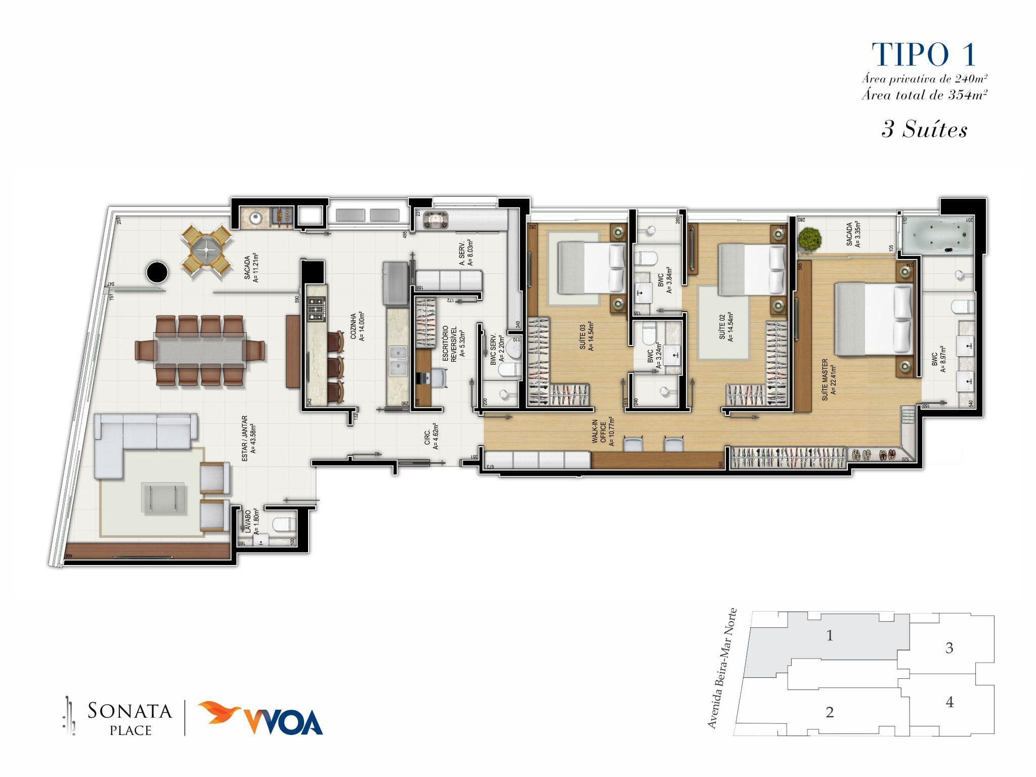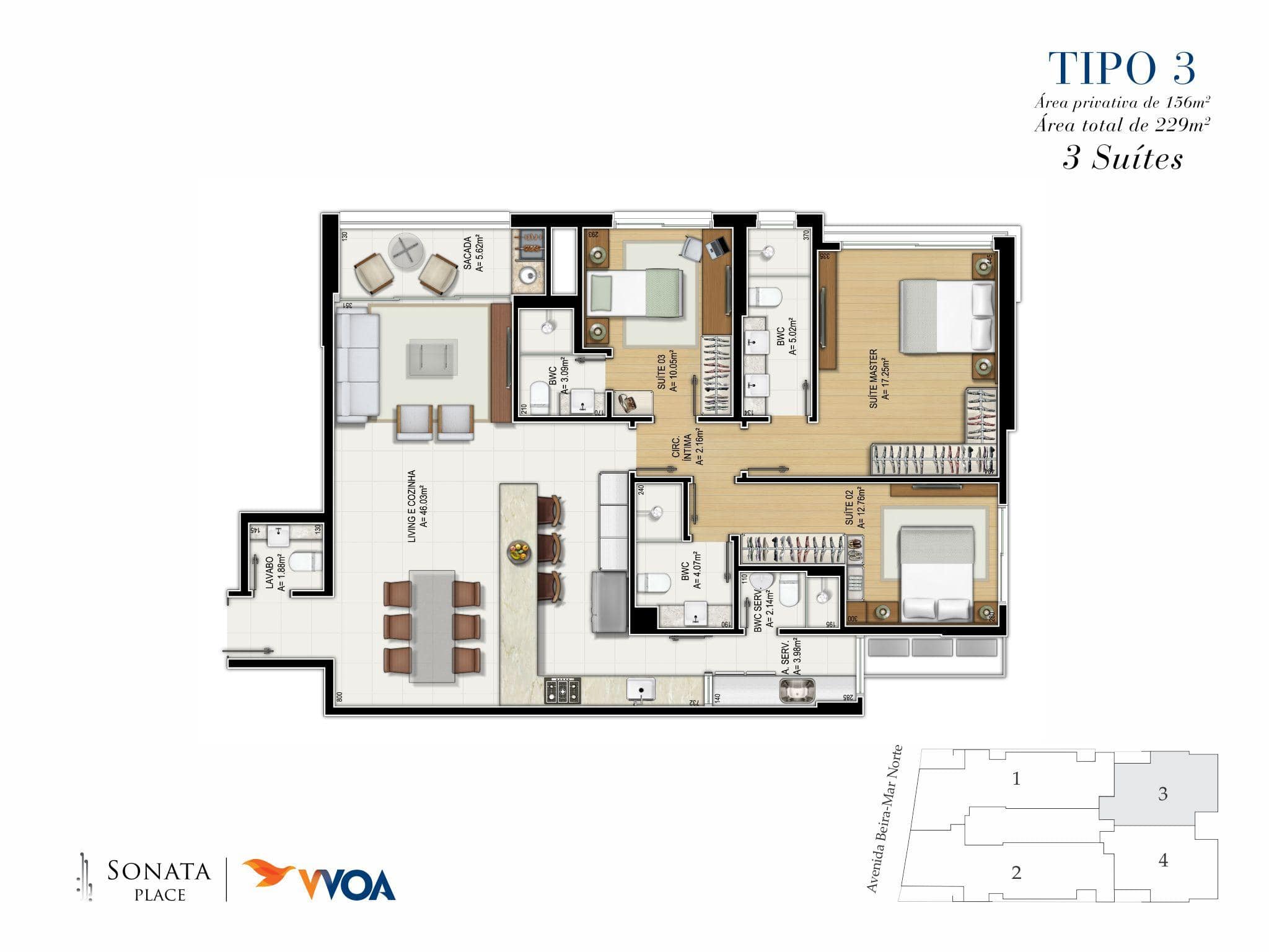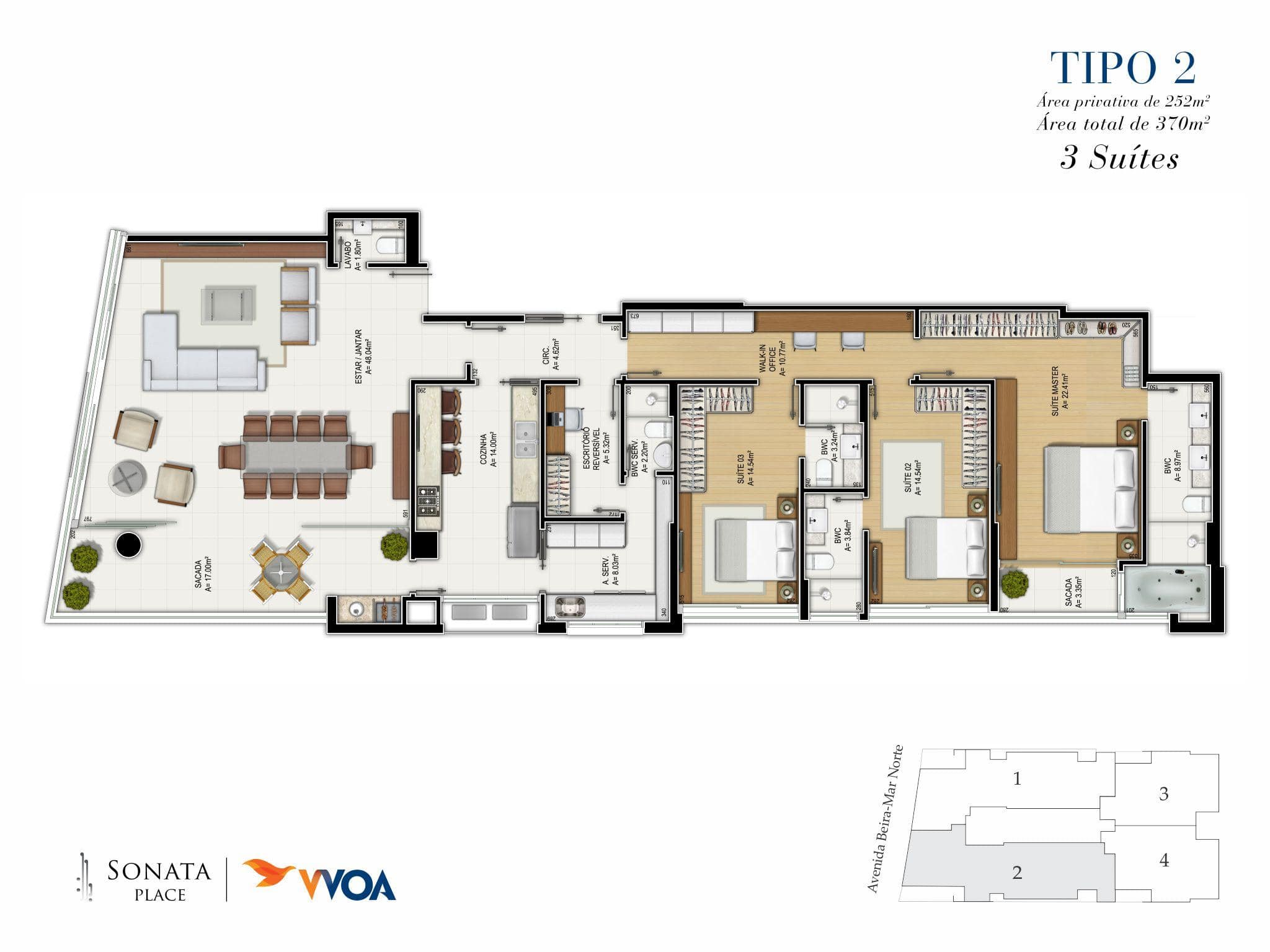 Tudo no Sonata Place foi pensado para proporcionar o máximo de conforto, requinte e sofisticação. O alto padrão de acabamento é um dos pontos fortes da WOA. As mais avançadas tecnologias e equipamentos estarão presentes em todo o edifício, garantindo o seu bem-estar e valorizando o seu imóvel.