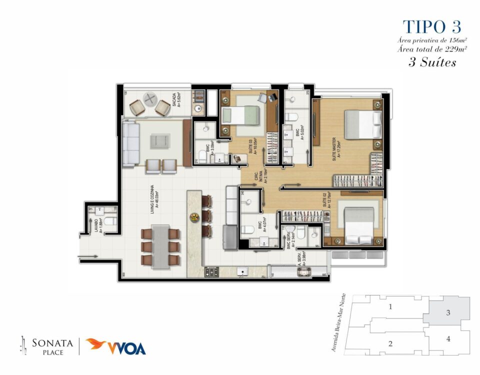 Trazer a paisagem espetacular da Beira-Mar Norte para dentro de casa, valorizando o espaço interno e a iluminação natural. Este foi o ponto de partida do projeto arquitetônico do Sonata Place. A integração com a paisagem, no entanto, é apenas um dos diferenciais do empreendimento, que se destaca também pelo altíssimo padrão de acabamento, pelas suítes superespaçosas e a localização ímpar.